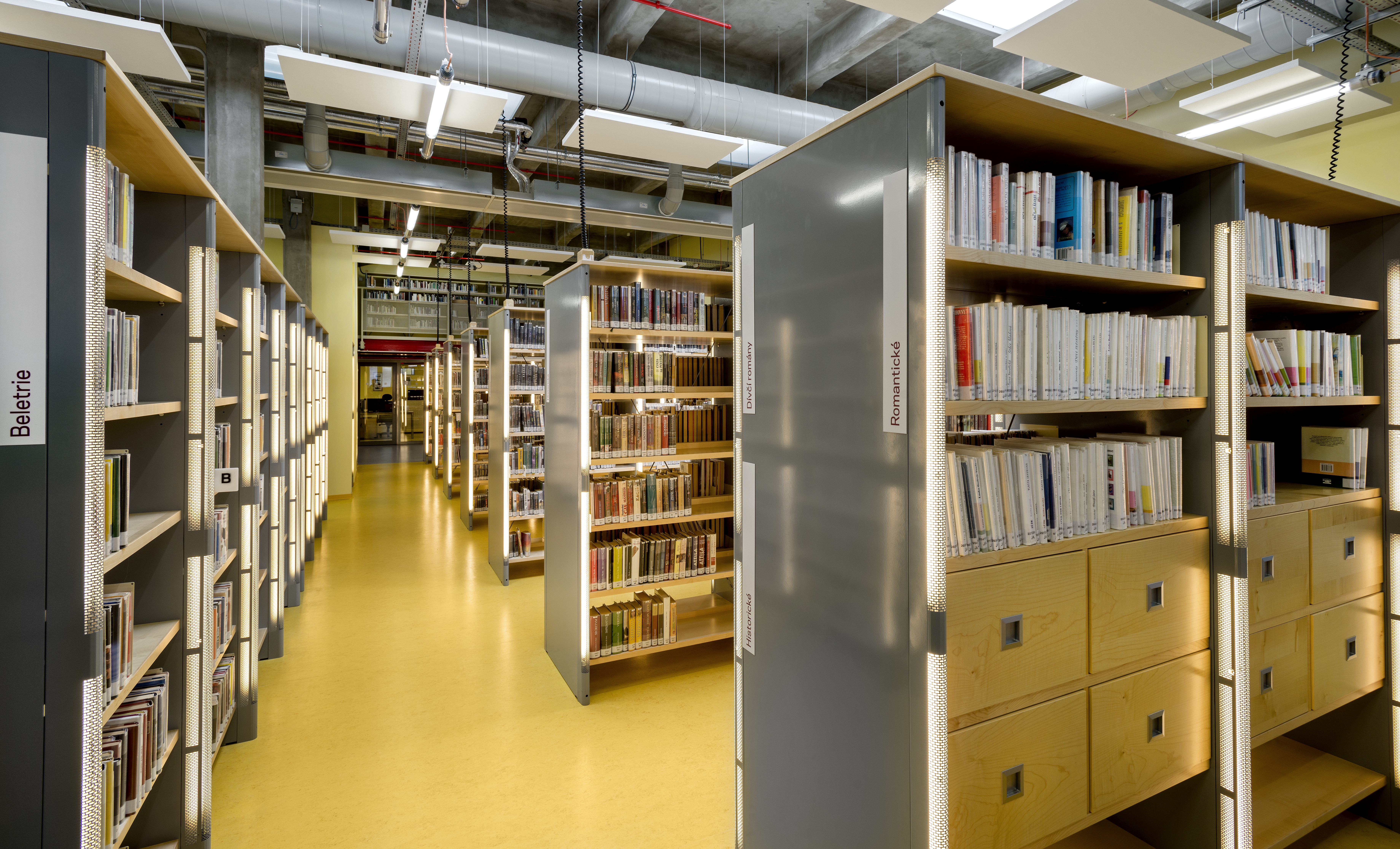Ke stažení jsou určeny fotografie interiéru a exteriéru nové ústřední budovy Knihovny města Hradce Králové ve Wonkově ulici. Při jejich použití, prosím, uvádějte jméno autora, kterým je Miroslav Beneš.