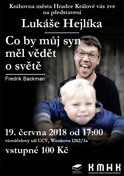 Poprvé bude v LiStOVáNí účinkovat jen jeden herec - Lukáš Hejlík. Je stejného věku jako Fredrik Backman a má stejně starého syna. Fredrik Backman (autor knihy Muž jménem Ove) vtipně stírá všechny úzkosti a nedostatky rodičů jednadvacátého století v půvabné knize plné upřímných obav a nepodmíněných vyznání lásky, která zasáhne srdce všech rodičů, a to dokonce i těch budoucích, potencionálních. Pořádáno S PODPOROU MĚSTA HRADEC KRÁLOVÉ. Vstupné 100 Kč.