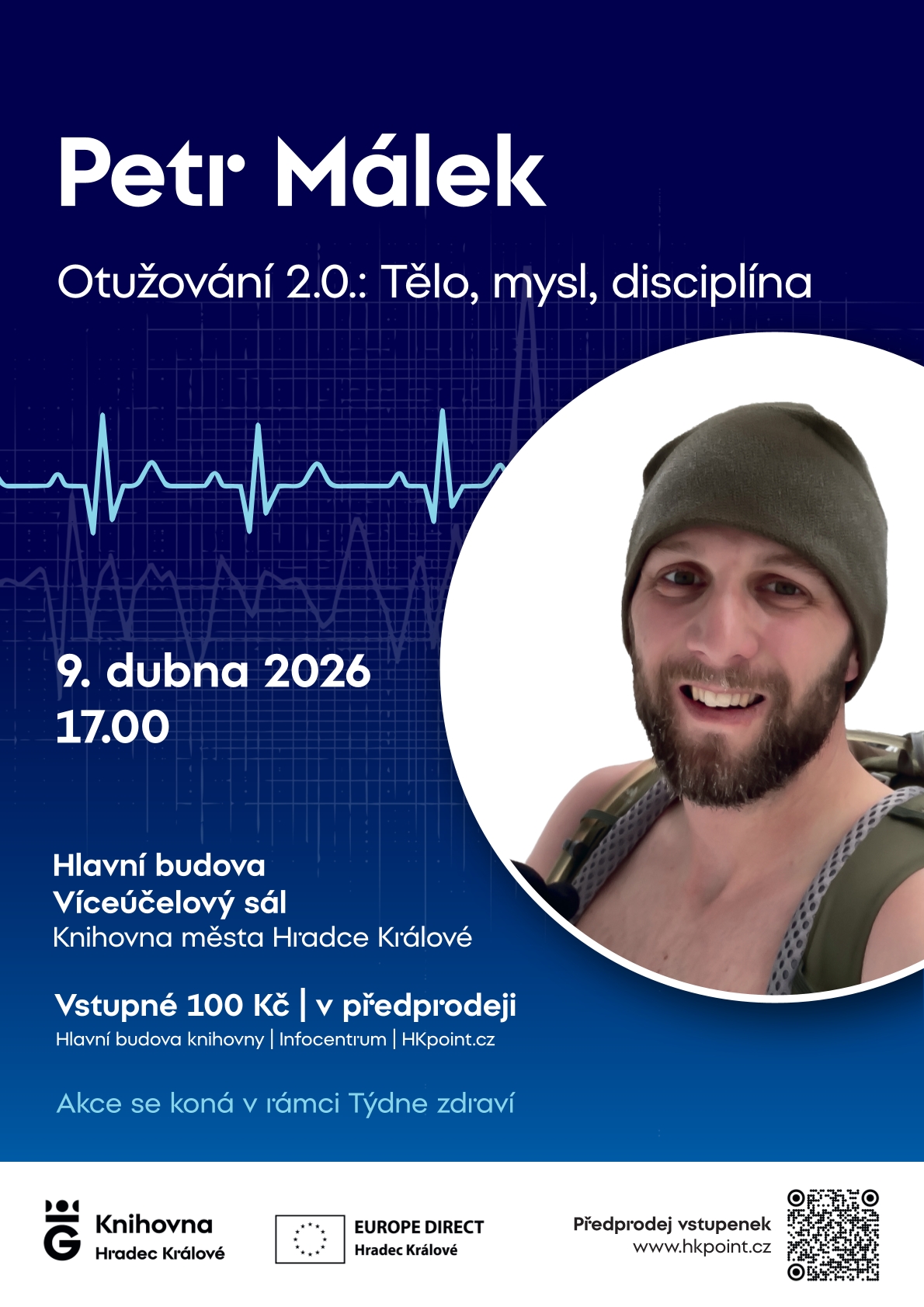 Každý z nás se někdy ocitne v období, kdy je toho příliš – stres, tlak, únava. Přednáška Petra Málka, bojového záchranáře působícího v Armádě ČR a odborníka, který se již více než osm let naplno věnuje otužování a studiu fungování lidského organismu v extrémních a zátěžových situacích, nabídne inspirativní pohled na to, jak pracovat s tělem i myslí, abychom lépe zvládali stres a nalézali vnitřní klid. Nejde jen o chlad, ale o pochopení disciplíny, psychické odolnosti a vlastních návyků – a hlavně o to, že i malé kroky mohou vést k velké změně.