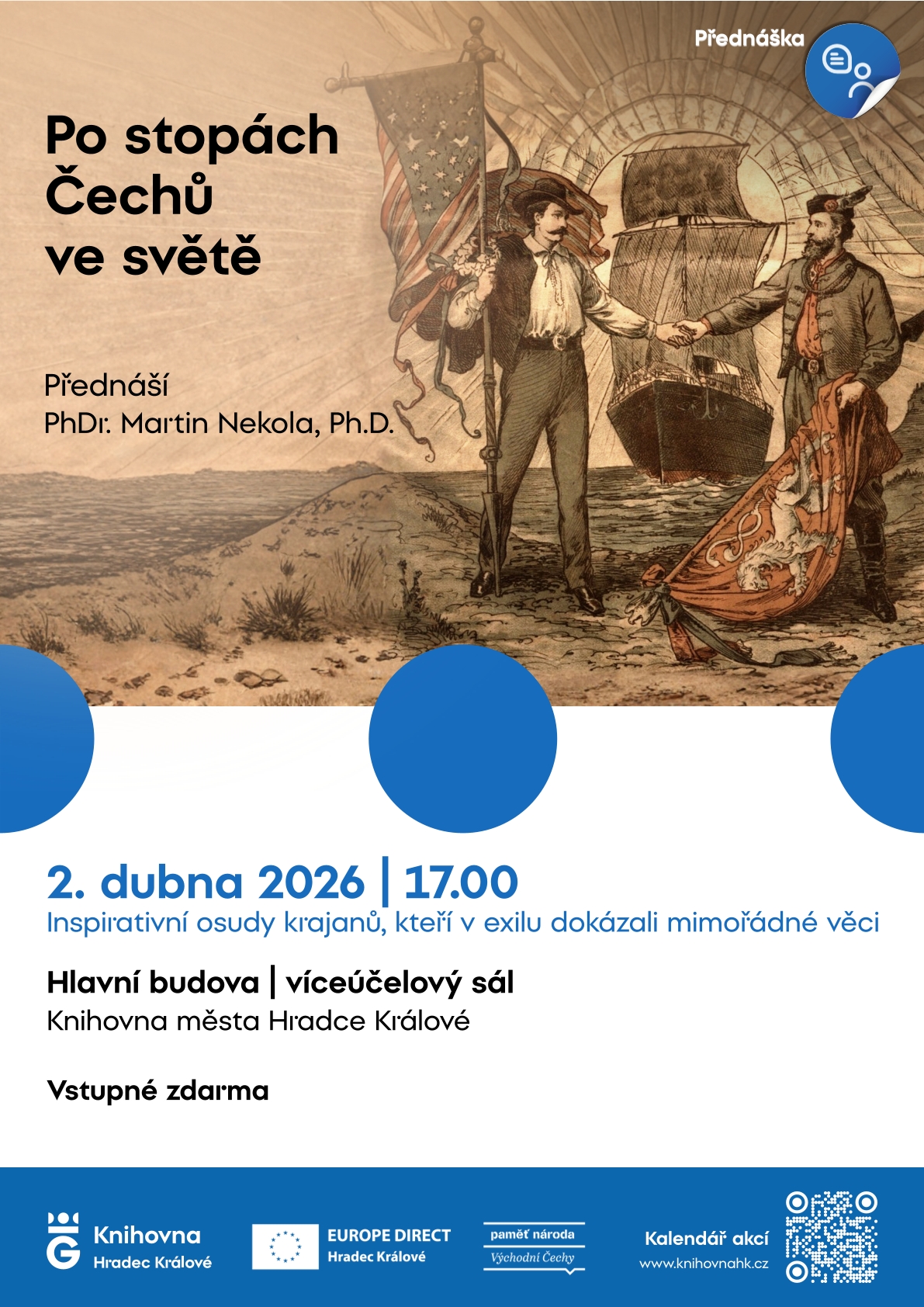 Víte, kdo otevřel první operu na Novém Zélandu? Kdo byl hlavním vojenským poradcem a přítelem etiopského císaře? Kdo v Peru koupil pozemek, pod nímž archeologové odhalili bájnou starověkou hrobku s tunami zlata? Byli to naši krajané, kteří v různých obdobích a za různých okolností byli nuceni opustit domov. Rozutekli se do celého světa a dokázali neuvěřitelné věci. Historik a politolog PhDr. Martin Nekola PhD. se věnuje tématu krajanů a exilu mnoho let, v hloubi zahraničních archivů nalezl řadu pokladů a především se potkal s inspirativními lidmi, na které bychom měli být náležitě hrdí, přitom o jejich zajímavých osudech často vůbec netušíme. Popularizační přednáška, doplněná o obrazovou prezentaci, se pokusí tuto mezeru částečně zaplnit.